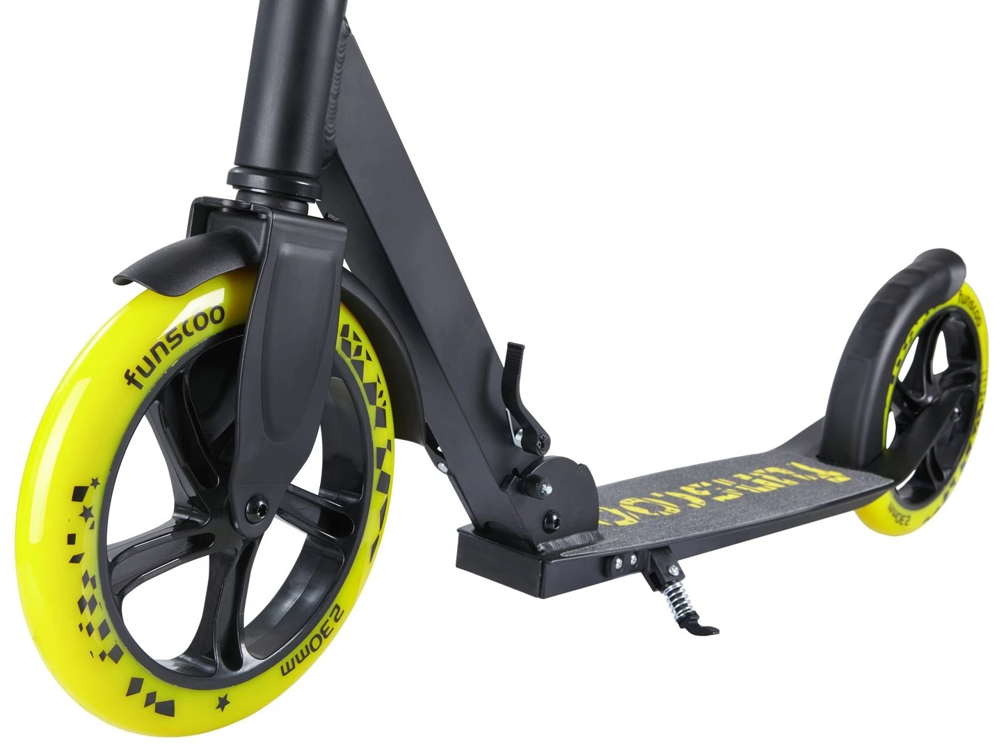Der Funscoo Aluminium City Scooter ist ideal für Alle, die gerne sportlich auf Rollen unterwegs sind. Das neue Low Deck bringt angenehmen Fahrspaß und der großzügige Lenker sorgt für eine bessere Kontrolle.