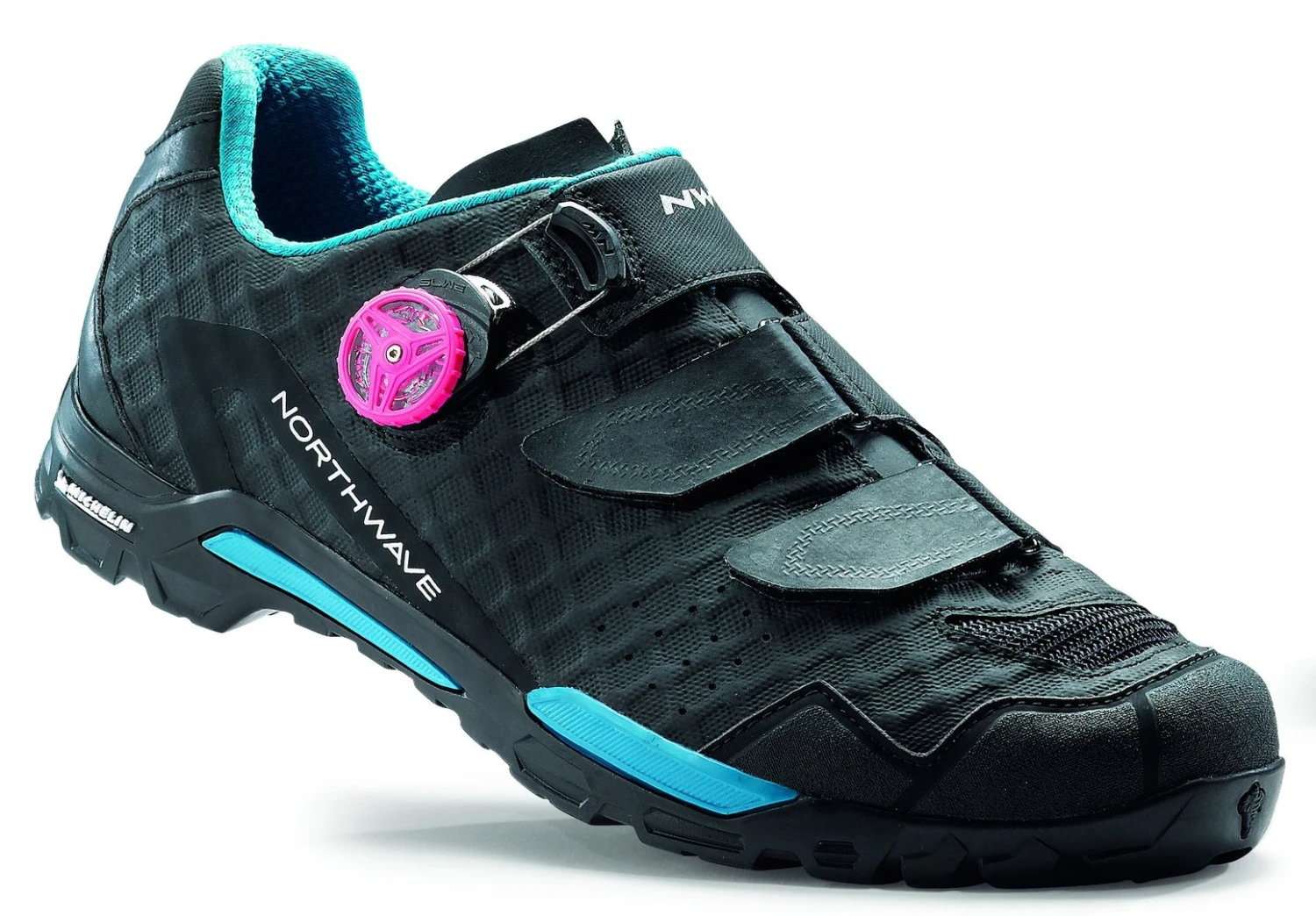 Northwave entwickelte diese Sohle zusammen mit Michelin Technical Soles, um eine gute Cross-Country-Performance mit Traktion zu kombinieren, damit man auf jedem Terrain sicher gehen kann. Die kalibrierte Steifigkeits-Zwischensohle entfaltet die reine Kraft auf dem Pedal, während die Außensohle sich beim Gehen großartig macht. Die Lauffläche, deren Muster von zwei Michelin-Offroad-Reifen inspiriert wurde, und die Außenschale sind aus 100 % Michelin-Kautschuk, der um 28 % widerstandsfähiger als TPU ist und einen hervorragenden Grip bei jedem Wetter bietet.