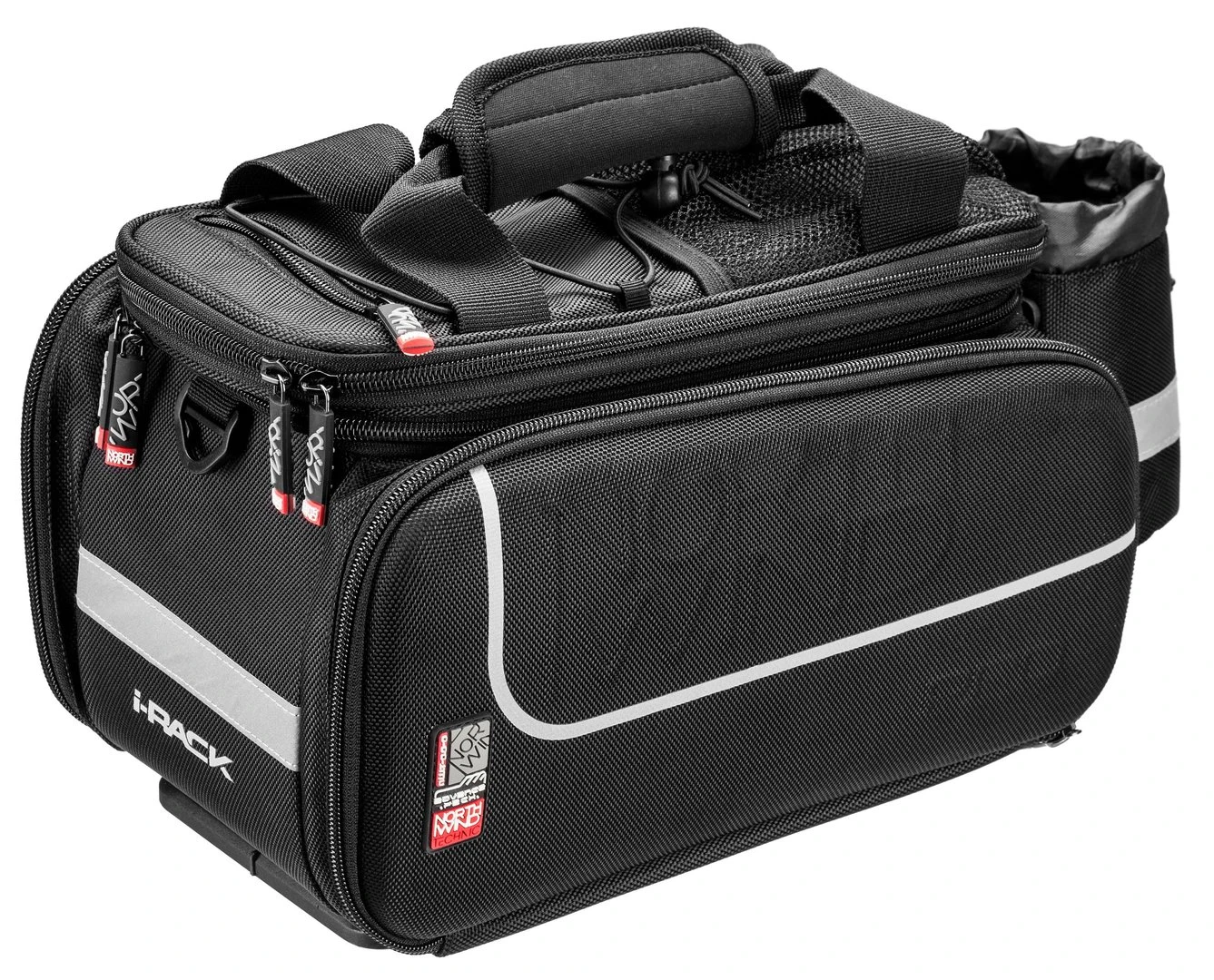 Gepäckträgertasche im stylischen Design. Ausgestattet mit Rail Adapter für i-Rack Gepäckträger. Inneres RV-Fach, variabel aufteilbar, Karabiner-Schlüsselhaken, seitlich ausklappbare Taschen, Seitentaschen vorgeformt, verstellbares Gepäckgummi, reflektierende Applikationen, Regenhülle. Abnehmbarer Flaschenhalter.