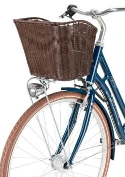 Vorderradkorb im Rattan-look braun + Vorderrad-Gepäckträger silber